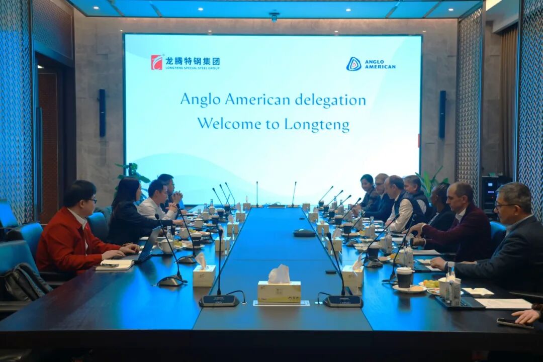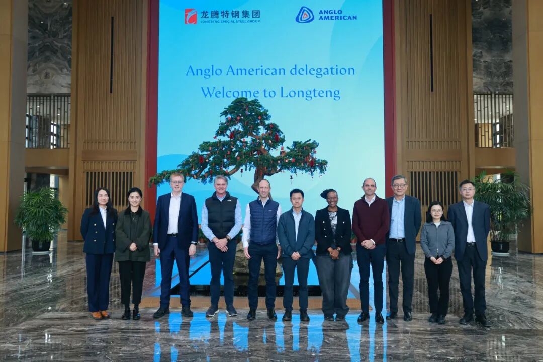 2026年3月25日,全球領(lǐng)先礦業(yè)公司英美資源(Anglo American)高層代表團一行到訪江蘇龍騰特鋼集團開展考察交流。此次來訪由英美資源董事、首席財務(wù)官John Heasley先生帶隊,成員包括秘魯區(qū)域首席執(zhí)行官Tony Power先生、南非區(qū)域首席執(zhí)行官Mpumi Zikakala女士、供應鏈高級副總裁Charles O'Donnell先生等在內(nèi)的8位管理層代表。江蘇龍騰特鋼集團黨委副書記、總裁徐勝先生及下屬團隊出席并接待來訪嘉賓。